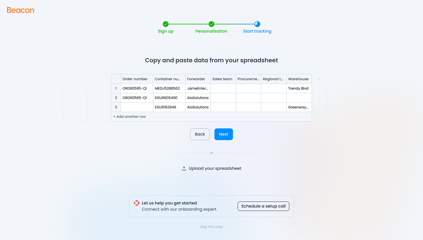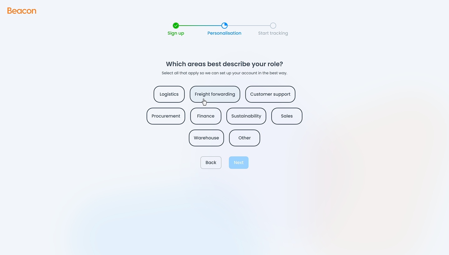 A personalised onboarding experience that accelerates adoption, tailoring Beacon to each user's role and integrating them seamlessly into the supply chain workflow.