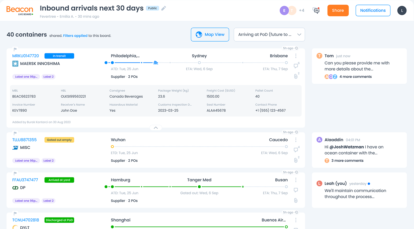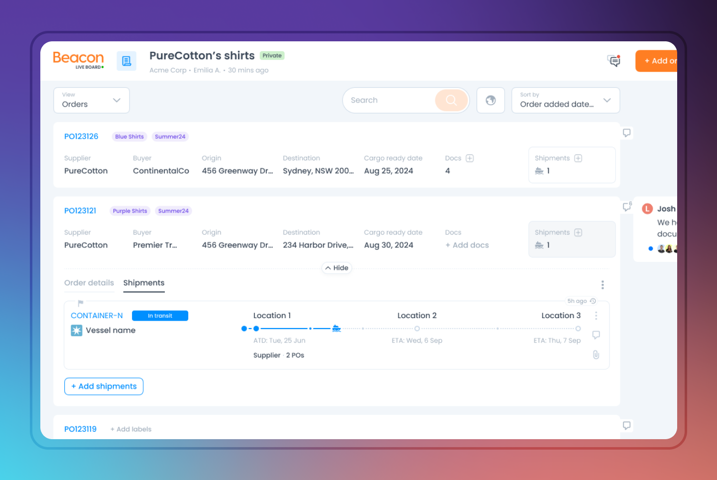 Live Boards give teams a customisable, real-time view of their orders and shipments, making collaboration seamless and effortless.